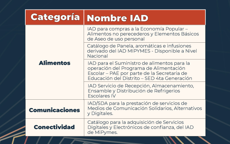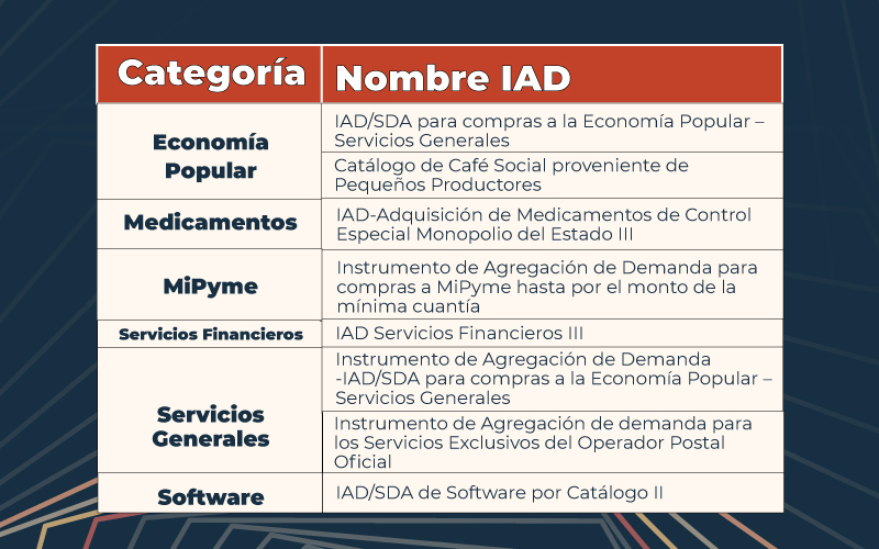 Acá te mostramos los Acuerdos Marco de Precios y los Instrumentos de Agregación de Demanda vigentes, como una guía práctica para que las entidades identifiquen las opciones disponibles y las apliquen de manera adecuada: